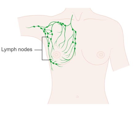 Šaltinis: Wikimedia.org. [žiūrėta 2020-05-14]. Prieiga per internetą: https://upload.wikimedia.org/wikipedia/commons/5/5a/Diagram_showing_the_network_of_lymph_nodes_in_and_around_the_breast_CRUK_315.svg