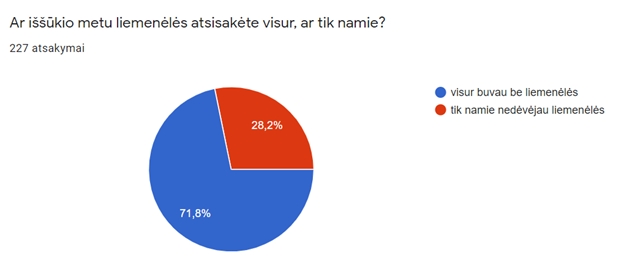Tyrimo metu nustatyta, kad 71,8 proc. apklaustųjų projekto metu visą dieną išbūdavo be liemenėlės (163 iš 227). 28,2 proc. moterų į darbą ir viešasias erdves pasirinko eiti su liemenėle, tačiau grįžusios namo liemenėlės atsisakydavo (64 moterys). Tikimės, kad liemenėlės nedėvėjimas namuose visoms dalyvėms taps ilgalaikiu įpročiu, net jei jos į viešumą vis dar eis su liemenėle.