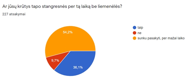 Moterims buvo užduotas klausimas apie kūtų stangrumą po mėnesio liemenėlės nedėvėjimo. Moterų atsakymai atvaizduoti pav. 2.2.5.